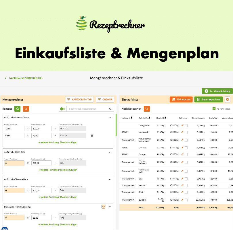 - Einkaufsliste & Mengenplanung