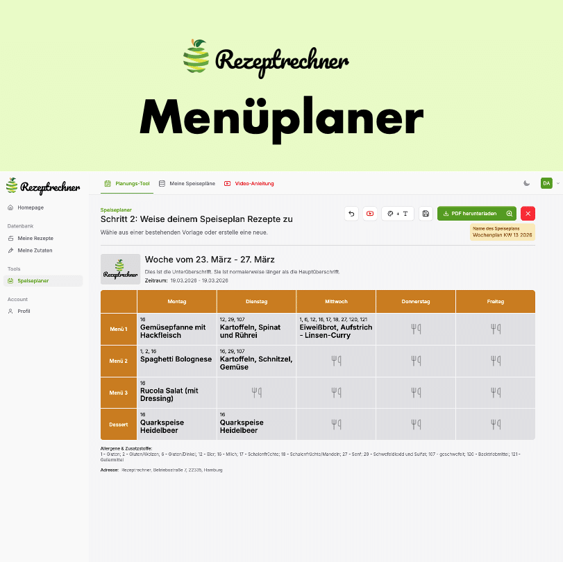 - Speiseplan erstellen