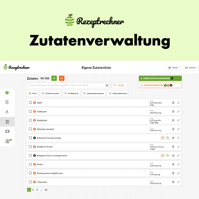 Rezeptrechner Software