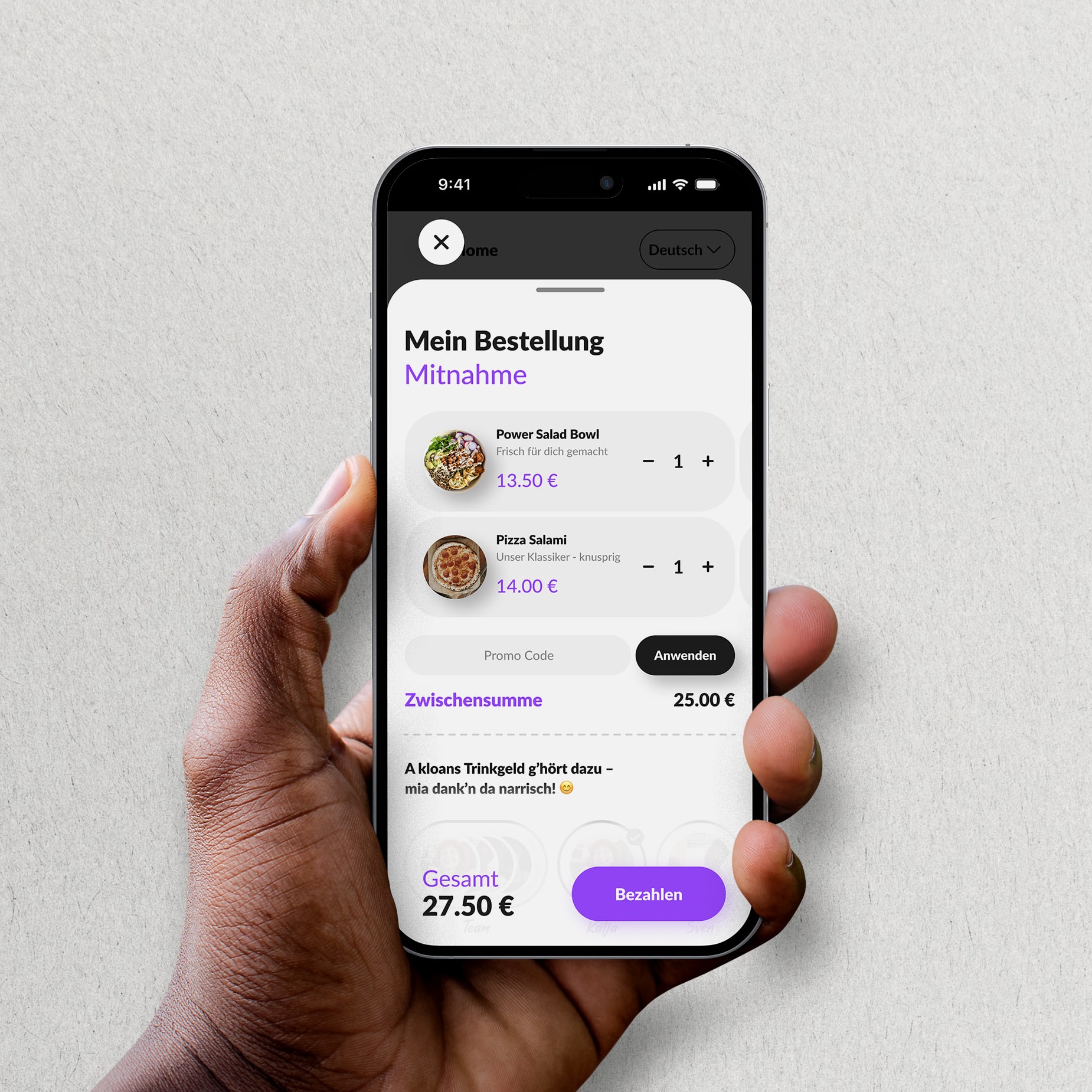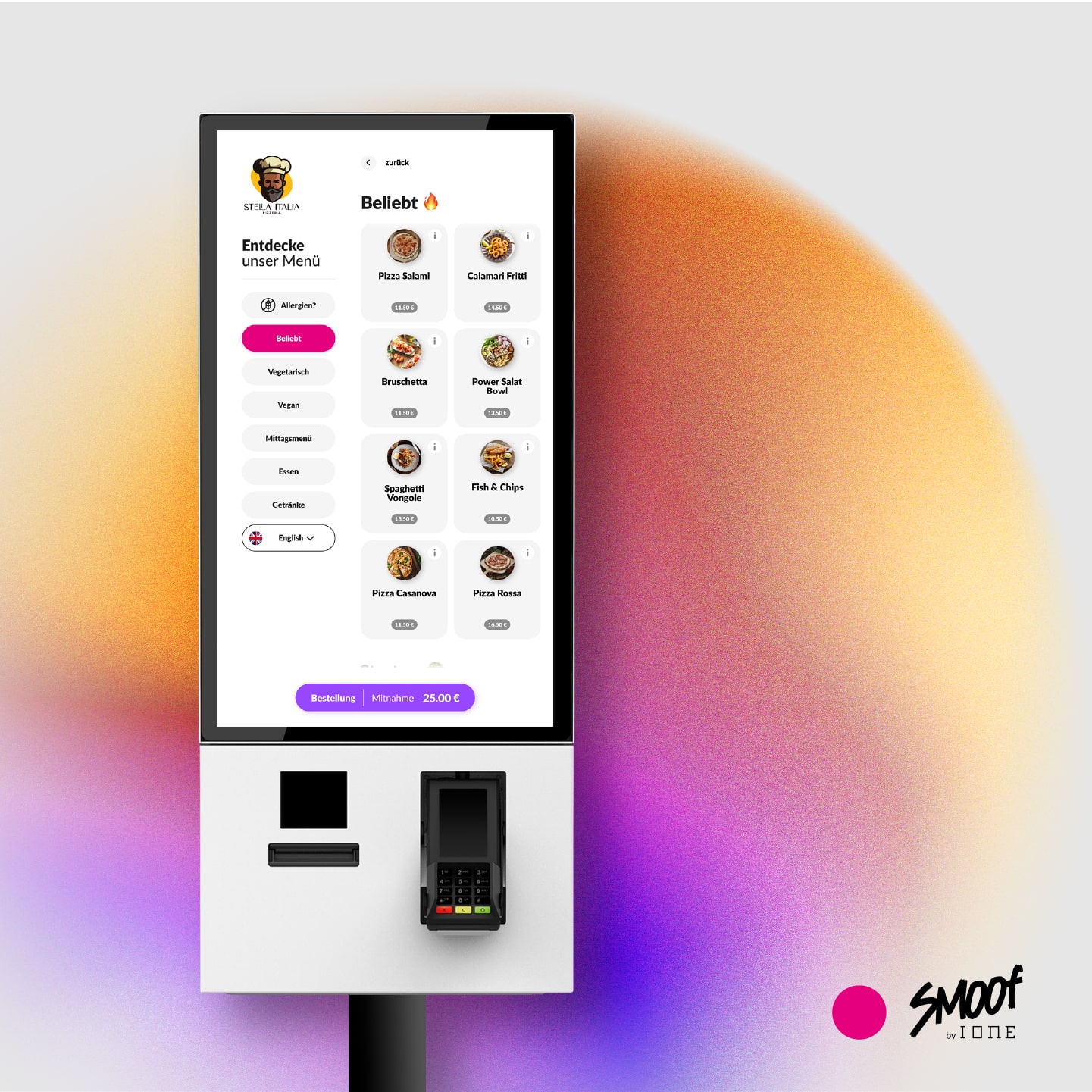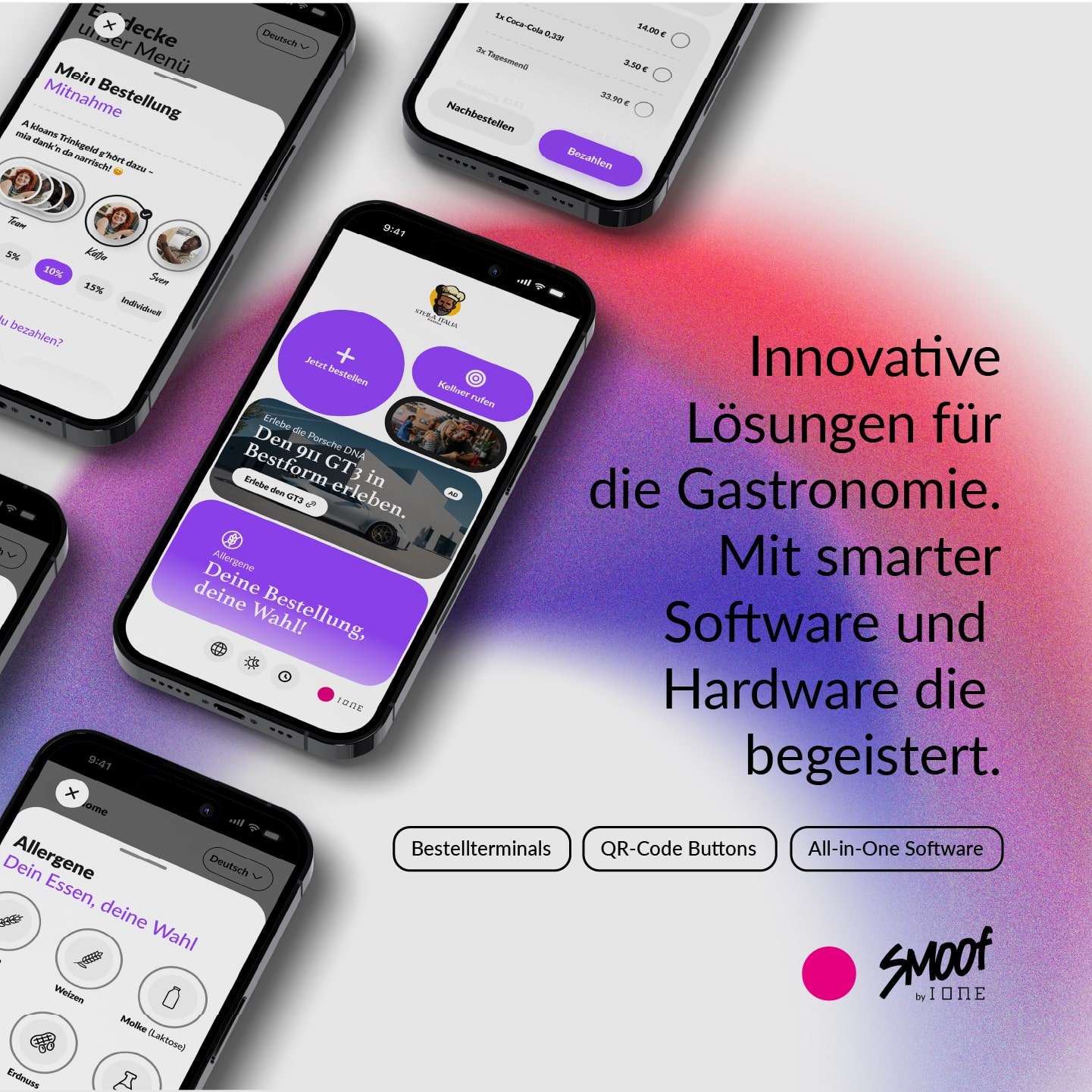 SMOOF ist eine digitale Bestell- und Bezahllösung für gastronomische Betriebe. Gäste scannen am Tisch oder Tresen einen QR-Code, wählen aus der digitalen Speisekarte und bezahlen ohne App-Download. Die Lösung eignet sich für Service vor Ort, Take-away und Lieferung; Self-Order-Terminals werden unterstützt. Ergänzend stehen Küchen- und Abholmonitore sowie eine Service-App („Pulse“) zur Verfügung. Durch die direkte Gastbestellung können Bestellfehler sinken, Leerläufe reduziert und Tische schneller neu belegt werden. Betriebe berichten von höherem Durchschnittsbon (z. B. durch Empfehlungen/Nachbestellungen) und geringerer gebundener Servicezeit pro Bestellung. Inhalte sind mehrsprachig, intuitiv pflegbar und lassen sich laufend aktualisieren. Ziel ist es, Bestellprozesse zu strukturieren, Personal zu entlasten und den Umsatz je Servicezeit zu erhöhen.